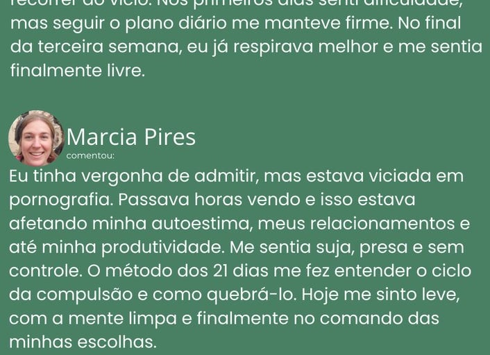 Isso depende do seu comprometimento. Muitos leitores relatam melhorias já nos primeiros 21 dias.